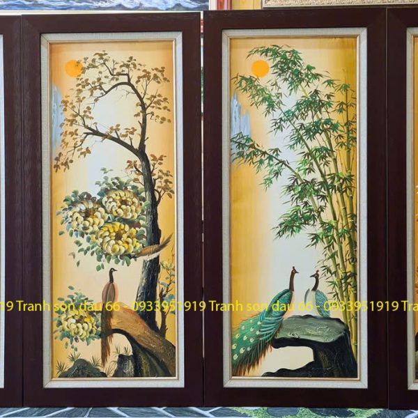 Tranh tùng cúc trúc mai, tranh sơn dầu bộ tứ quý chim trĩ
