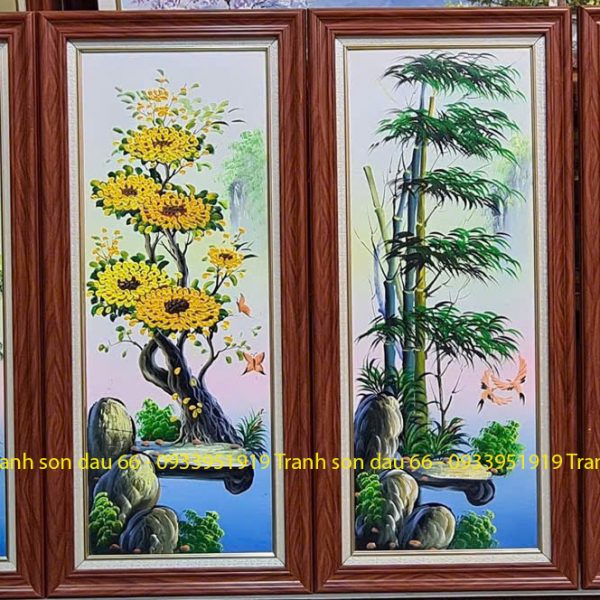 Tranh tùng cúc trúc mai, tranh sơn dầu bộ tứ quý