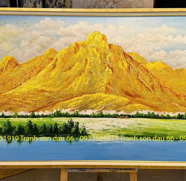 Tranh vẽ núi vàng vững trãi, tranh sơn dầu núi vàng phong thủy