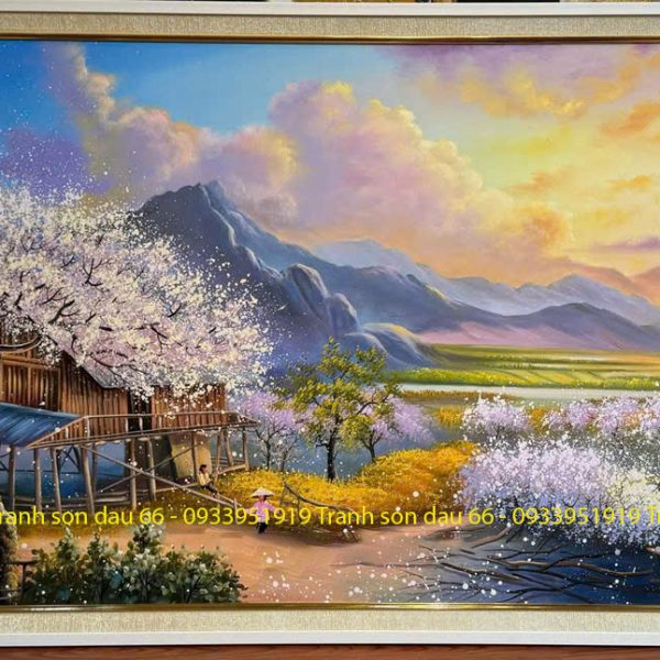 Tranh vẽ núi rừng Tây Bắc đầy màu sắc chất thơ, tranh sơn dầu phong cảnh