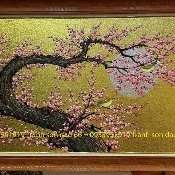 Tranh dát vàng cành đào, tranh dát vàng sơn dầu nghệ thuật