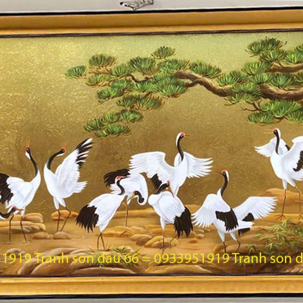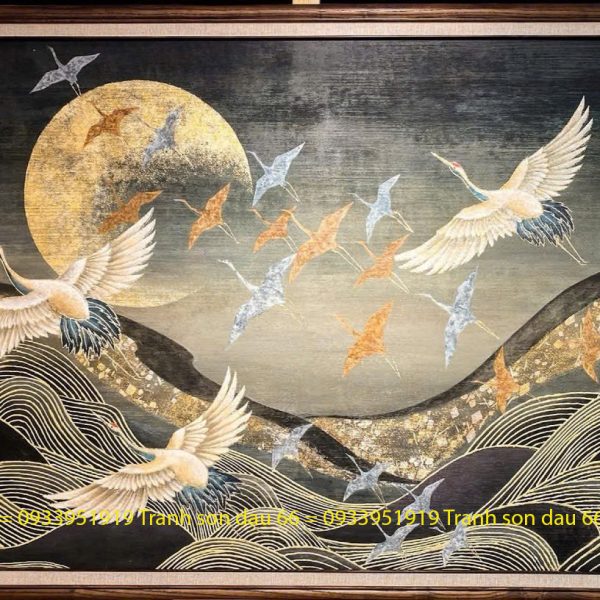 Tranh dát vàng đàn hạc bay, tranh sơn dầu dát vàng cao cấp