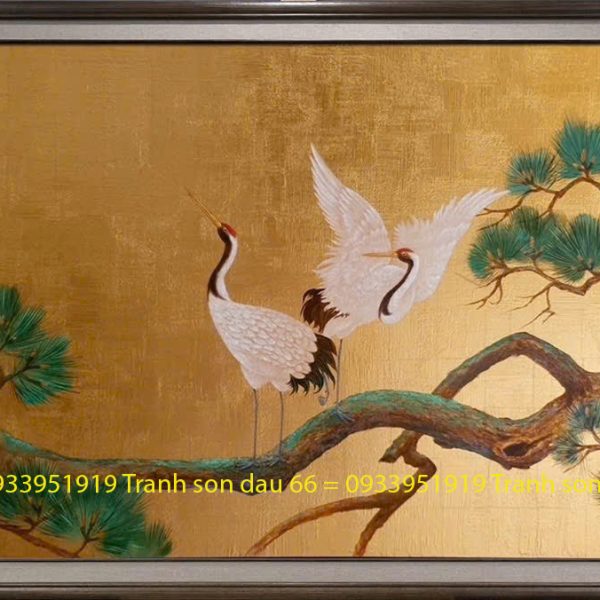 Tranh dát vàng đôi hạc, tranh dát vàng tùng hạc đẹp