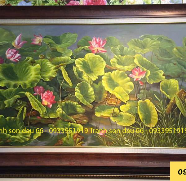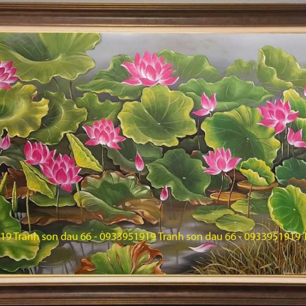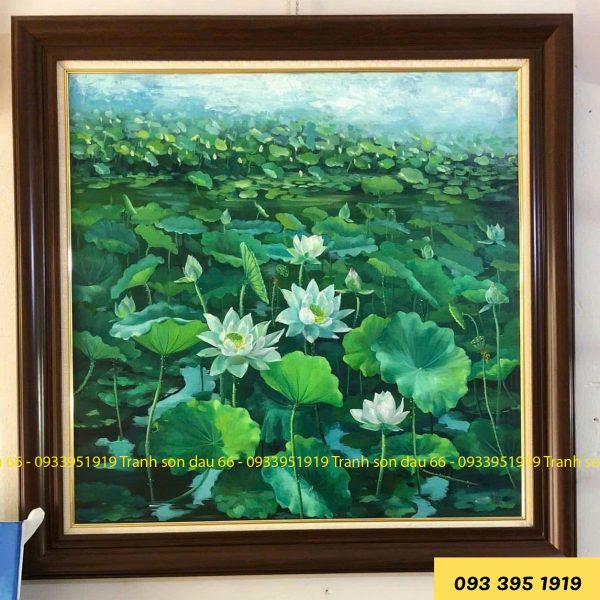 Tranh hoa sen vẽ sơn dầu, tranh hoa sen khổ vuông