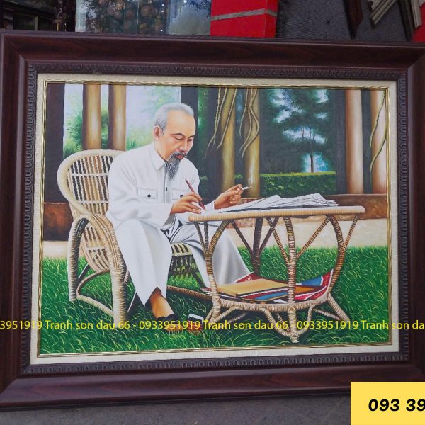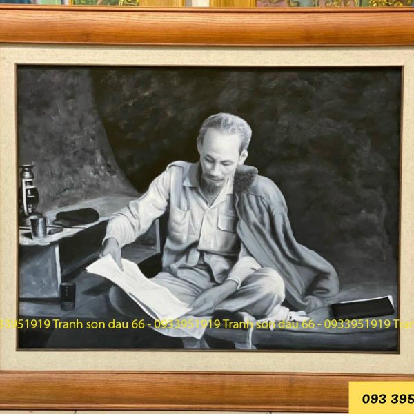 Tranh sơn dầu bác hồ đọc báo, tranh chân dung bác hồ