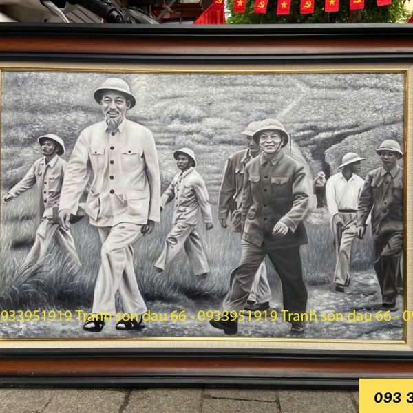 Tranh bác hồ bác giáp thăm quân đội, tranh sơn dầu bác hồ bác giáp đẹp