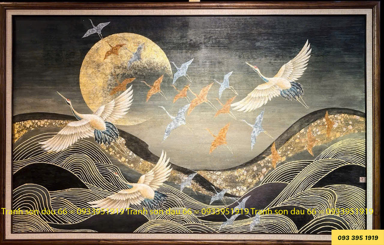 Tranh dát vàng đàn hạc bay, tranh sơn dầu dát vàng cao cấp Trong thế giới nghệ thuật, tranh sơn dầu luôn giữ vị trí đặc biệt nhờ khả năng tái hiện sống động màu sắc, chiều sâu và thần thái của đối tượng. Không chỉ là một vật phẩm trang trí, tranh sơn dầu còn mang trong mình giá trị tinh thần, văn hóa và phong thủy. Những năm gần đây, xu hướng đặt vẽ tranh sơn dầu theo yêu cầu ngày càng trở nên phổ biến tại Việt Nam. Khách hàng không chỉ muốn treo một bức tranh đẹp, mà còn mong muốn có một tác phẩm “độc bản” gắn liền với cá nhân, gia đình hoặc doanh nghiệp.
