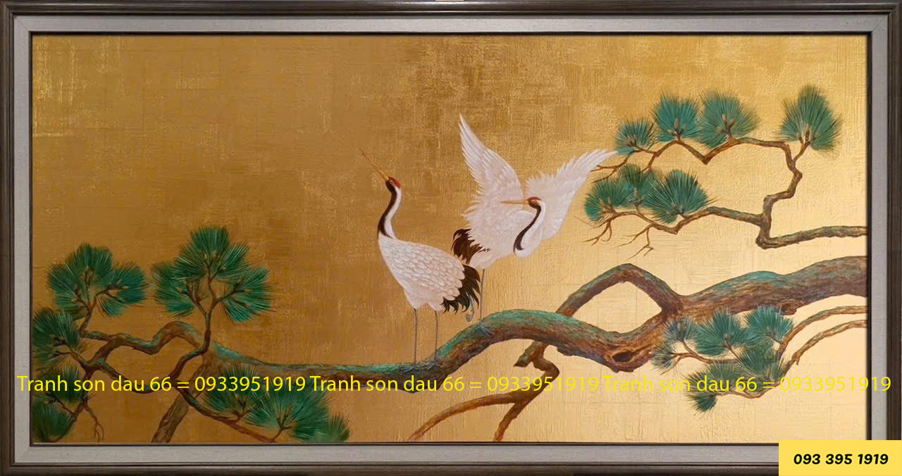 Tranh dát vàng đôi hạc, tranh dát vàng tùng hạc đẹp