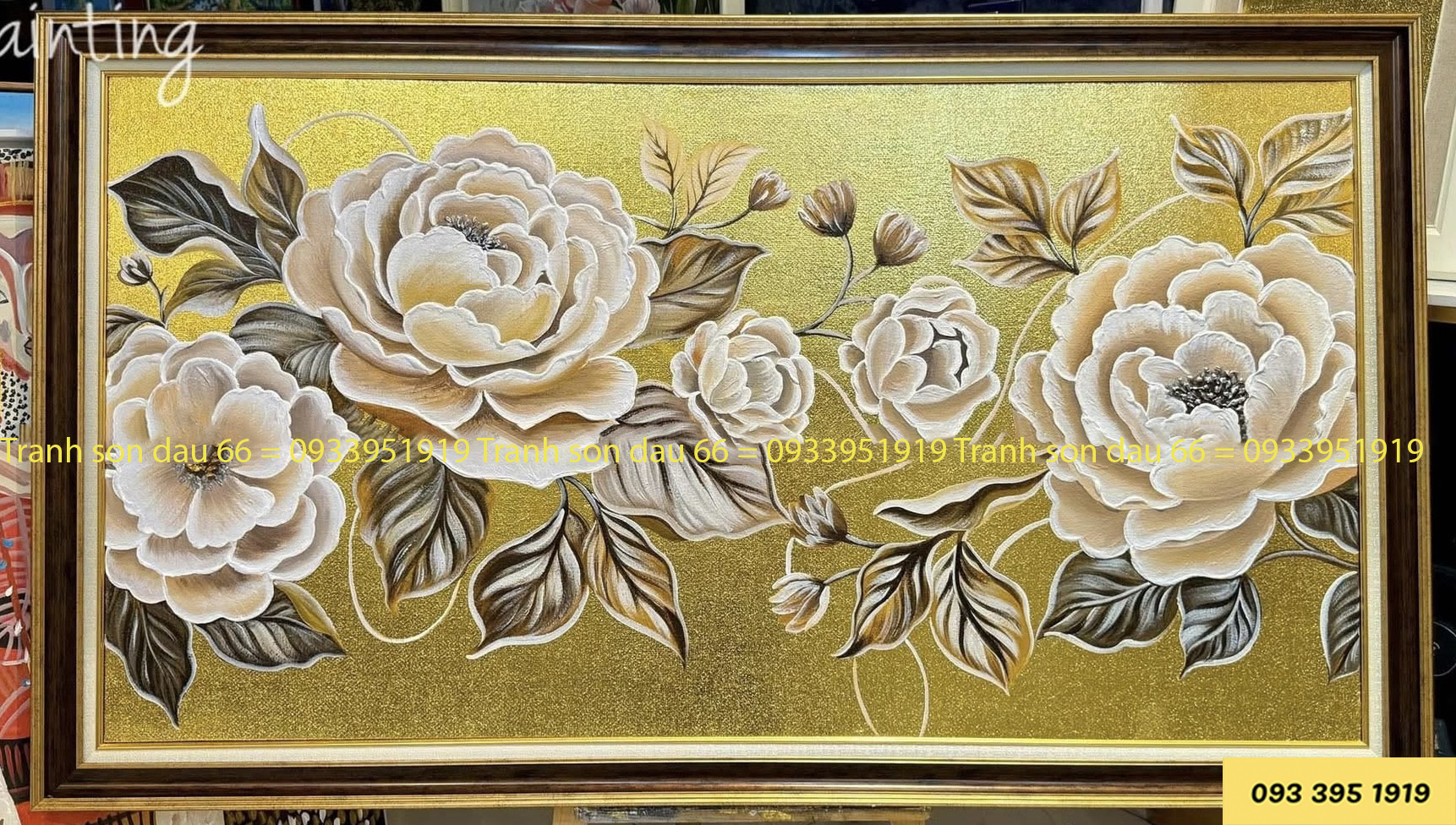 Tranh dát vàng hoa mẫu đơn, tranh dát vàng sơn dầu hoa mẫu đơn