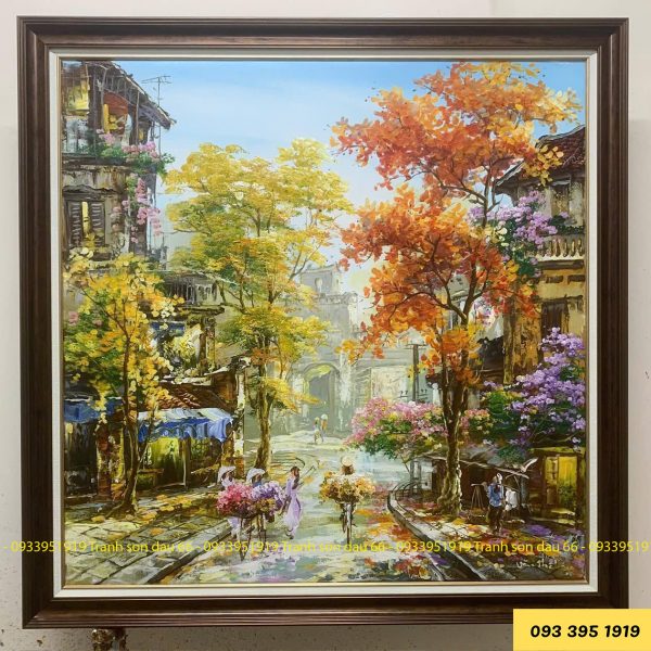 Tranh phong cảnh thiên nhiên tươi đẹp vẽ sơn dầu là tranh lấy đề tài phong cảnh thiên nhiên. Quý khách có thể nhìn thấy cảnh sắc thiên nhiên được tái hiện một cách chân thực, độc đáo với những gam màu dịu nhẹ. của những hàng cây tươi xanh của những khóm hoa đẹp mang đầy vẻ đẹp cảnh sắc thiên nhiên.