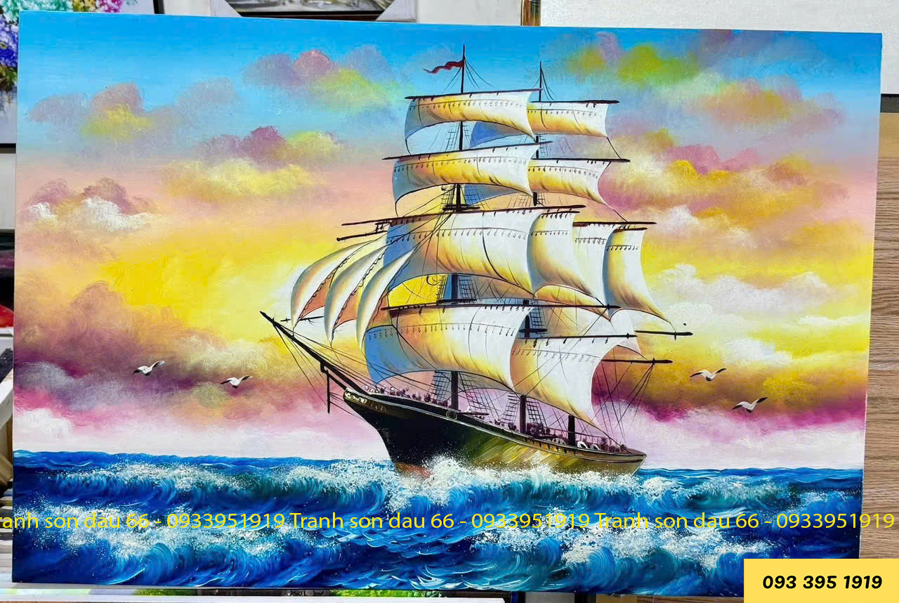Con thuyền căng buồm ra khơi cũng biểu thị cho tinh thần tự do, khát khao khám phá và mở rộng chân trời mới. Treo tranh Thuận buồm xuôi gió không chỉ làm đẹp không gian mà còn truyền tải thông điệp về sự tự do, sáng tạo và ước mơ không giới hạn.